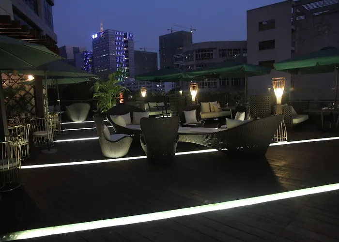 The 4-star Shenzhen Novotel Watergate, located in Futian, which is known for its cocktail bars, live music venues, and dance clubs, 1.4 km from Kingkey 100, features views of the city. This eco-friendly hotel lies just a pleasant stroll away from Kk100 Skyscraper, and offers an à la carte restaurant and a swimming pool onsite.